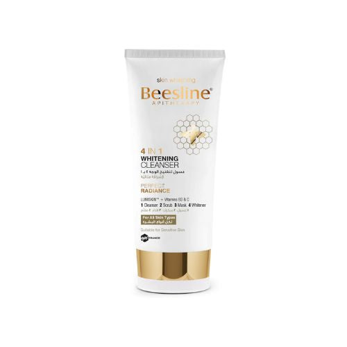 Beesline 4 in 1 Whitening Cleanser is a multi-action facial cleanser that purifies, exfoliates, removes makeup, and brightens the skin.